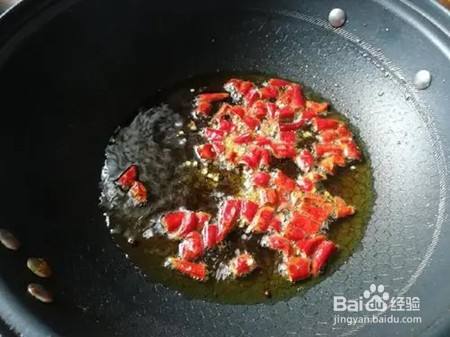 3.油锅烧热,先把辣椒倒进去炒香后,将冬瓜倒进去。