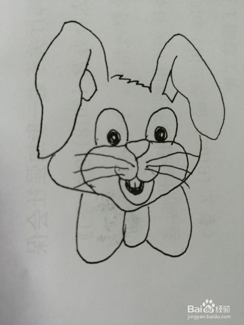 第六步,然后把可爱的长耳朵小兔子的牙齿和嘴巴画出来。