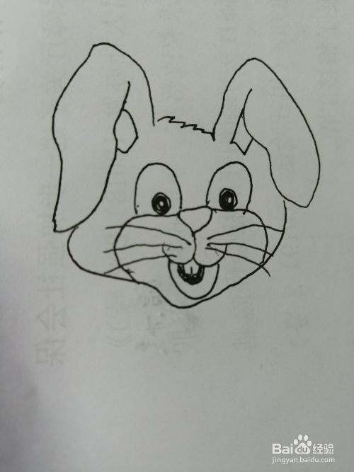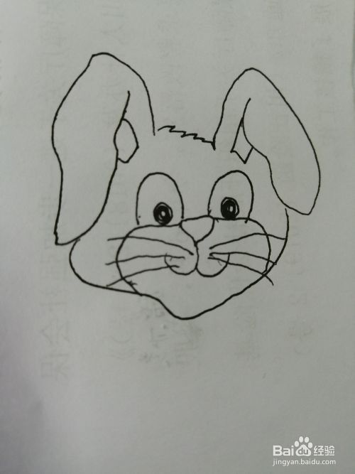 第五步,接着继续画出长耳朵小兔子的嘴巴和两边的胡须。