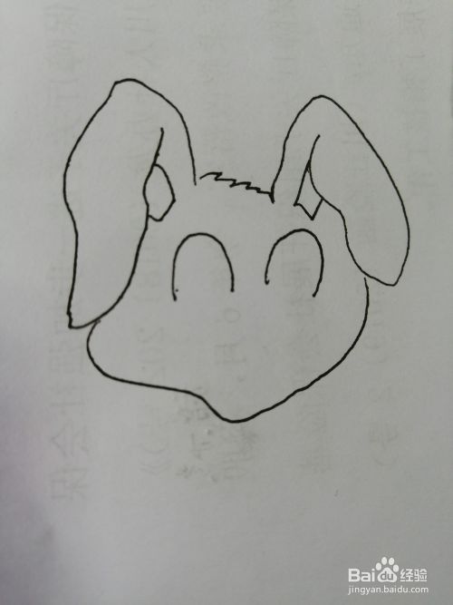 第二步,接着画出可爱的长耳朵小兔子的椭圆形的脸。
