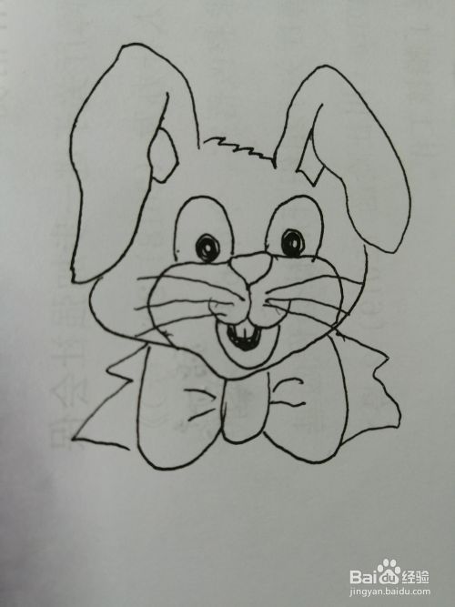 第七步,最后把可爱的长耳朵小兔子的蝴蝶结画出来。可爱的长耳朵蝴蝶结就画好了。