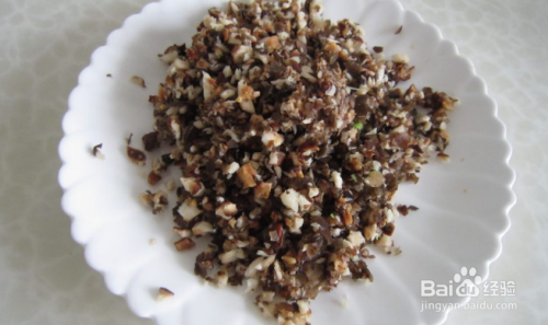 香菇泡发好之后,洗净,香菇蒂可以不用去除,都切成丁,接着剁碎。