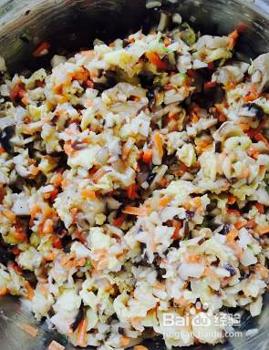 、芝麻油、料酒、生抽、盐,继续搅拌均匀。鸡蛋香菇虾仁饺子馅就做好啦。