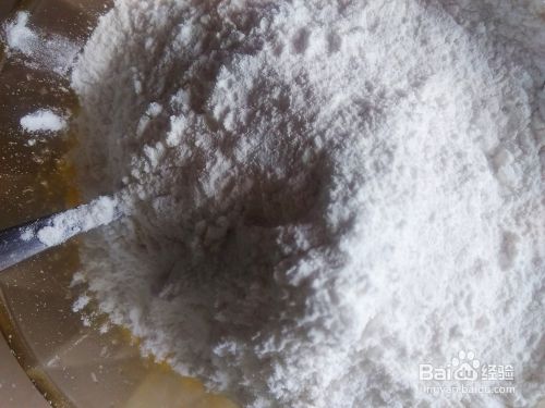 然后加50克的面粉到鸡蛋黄里搅拌,再分几次把蛋清泡沫放进去。