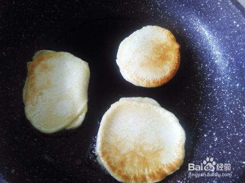热锅下油,用勺子装粉糊放锅里用小火煎,煎2分钟左右把饼翻转,然后再煎2分钟左右就可以出锅了。