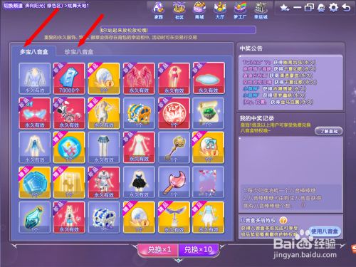 我们打开炫舞全景上面一栏的幸运城——多宝八音盒,来到卡八音盒的界面,有多宝八音盒和珍宝八音盒两种模式