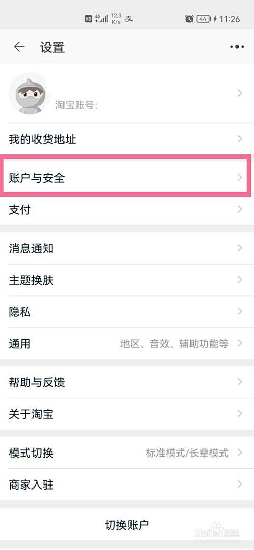 点击【账户与安全】选项。
