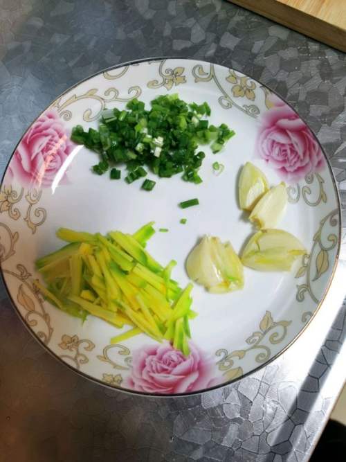 3两准备好的葱姜蒜处理一下,蒜头压碎,姜切片或切丝都可以