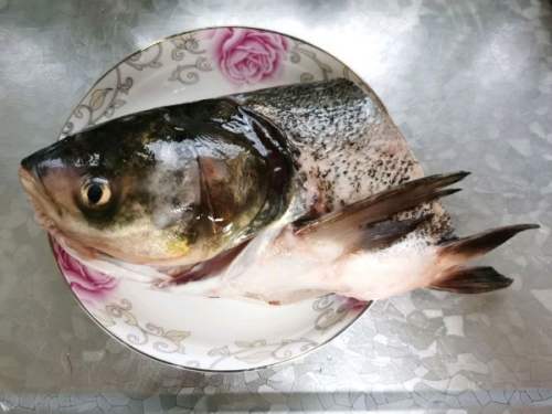 1花鲢鱼头洗净,鱼鳍根部和下巴处的细鳞重点关注,听说拔掉鱼牙可以更有效地去腥