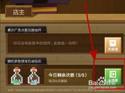在店主的馈赠里面可以看到下方有一个【去观看】,这里便是店主的馈赠了,看完一个视频可以获取随机的绿宝石或钻石。