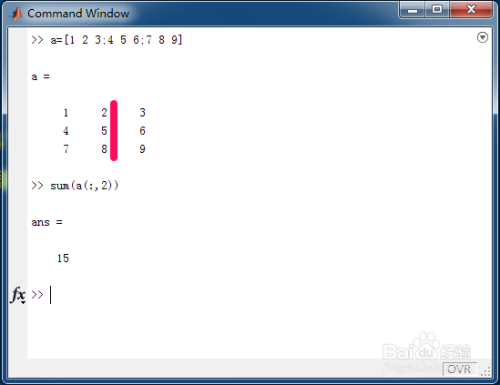 生成一个矩阵以及使用sum函数对矩阵进行操作。在MATLAB默认的情况下,sum函数对矩阵的每一列的元素进行求和,结果是一个横向量。