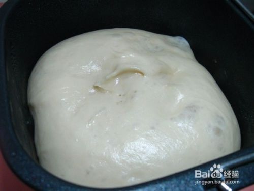 随后放入面粉、酵母、汤种,启动面包机揉至完成阶段,并进行基础发酵