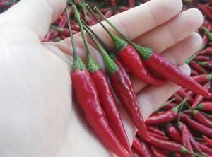 一般辣椒要等然变红的时候才采摘下晒干。通常就是平铺在干燥的地面或网上、报纸等,直接在太阳下暴晒。暴晒期间还需经常翻动,使其受热均匀。青辣椒并不适合晒成干辣椒,由于含水分比红辣椒多,适合腌。