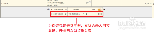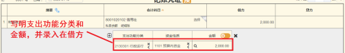 ②将银行存款利息所得收入录入在借方目录中,写明本收入日后的支出功能分类目录。作者这里日后支出功能分类为“2130301 行政运行”。