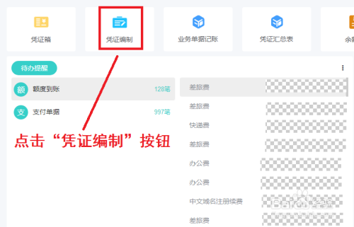 2.在做账软件的主页面中选择上方的“凭证编制”按钮。
