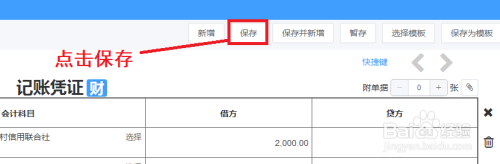 3.最后点击凭证编制页右上角的保存按钮。自此,就完成了银行存款利息收入做账的的全部操作。