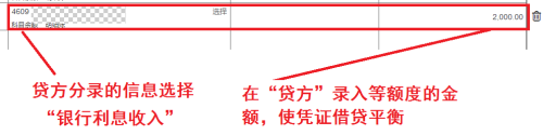 ③为保证凭证借贷平衡,寻找贷方分录信息,作者这边为4609—银行利息收入,并贷方输入同等的金额。