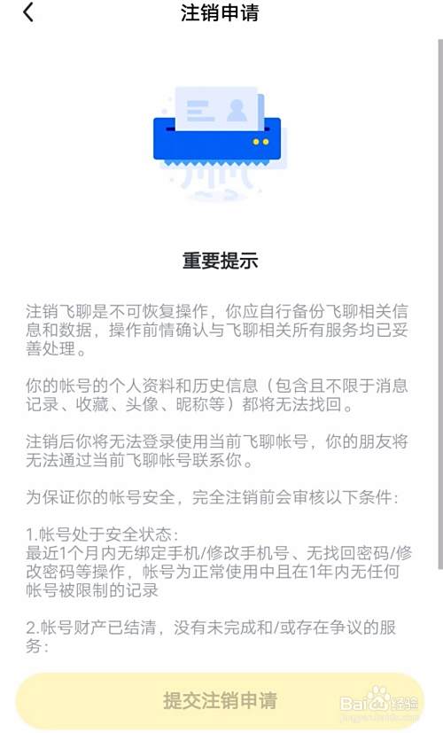 注销申请这里一定要注意提交后注销不可以恢复,而且注销之前一定要把自己的数据啥的保存好,然后提交注销申请就行了!