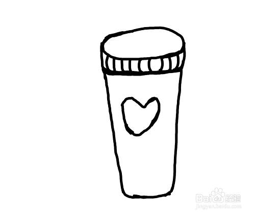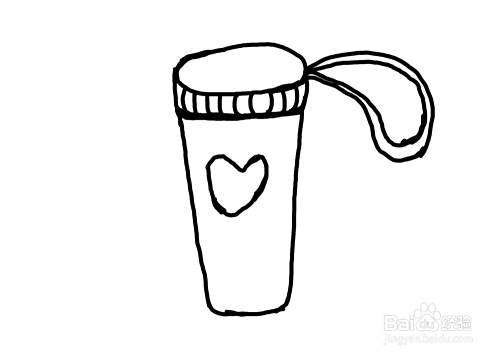 第五步,画出水杯上的装饰图案,画一个小爱心
