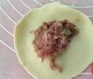 对折,中间捏一下,两边向里收捏出褶皱,美味的牛肉饺子好吃极啦