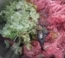 牛肉馅加入鸡蛋,葱末,酱油,盐,鸡汁,香油,胡椒粉同方向搅拌上劲