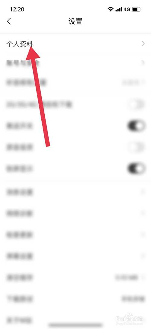 然后点击个人资料。