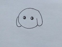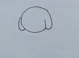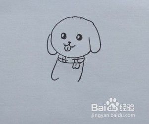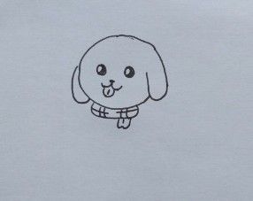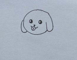 用中性笔画小黄狗的头部轮廓和耳朵。