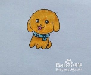 用水彩笔给图片上色。一只可爱的小黄狗画好了!