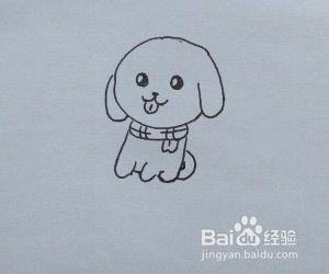 用中性笔画小黄狗的嘴巴、鼻子。