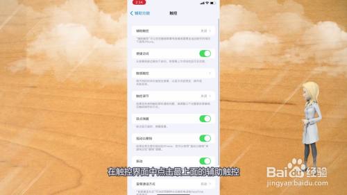 打开辅助功能界面后选择点击触控,在触控界面中点击最上面的辅助触控。
