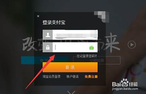 打开百度搜索,输入支付宝,进入登录界面, 输入账号密码进行登录
