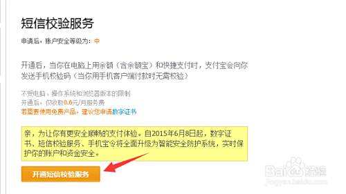 进入确认界面,提示开通短信服务之后的功能,以及相关收费情况,点击【开通短信校验服务】