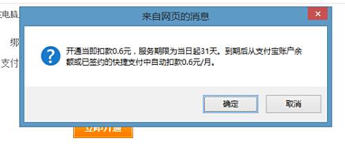 输入密码点击确认,此时会弹出对话框,显示开通后详细的收费情况,点击确认进行开通即可