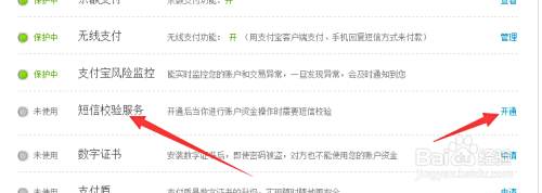 进入安全中心,在短信功能栏里可以看到【短信校验服务】,点击后方的【开通】