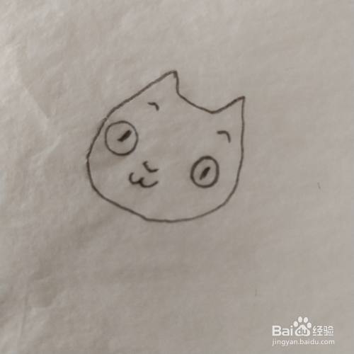 首先我们需要画一个小猫的头,头顶上面是三角形尖尖的耳朵。