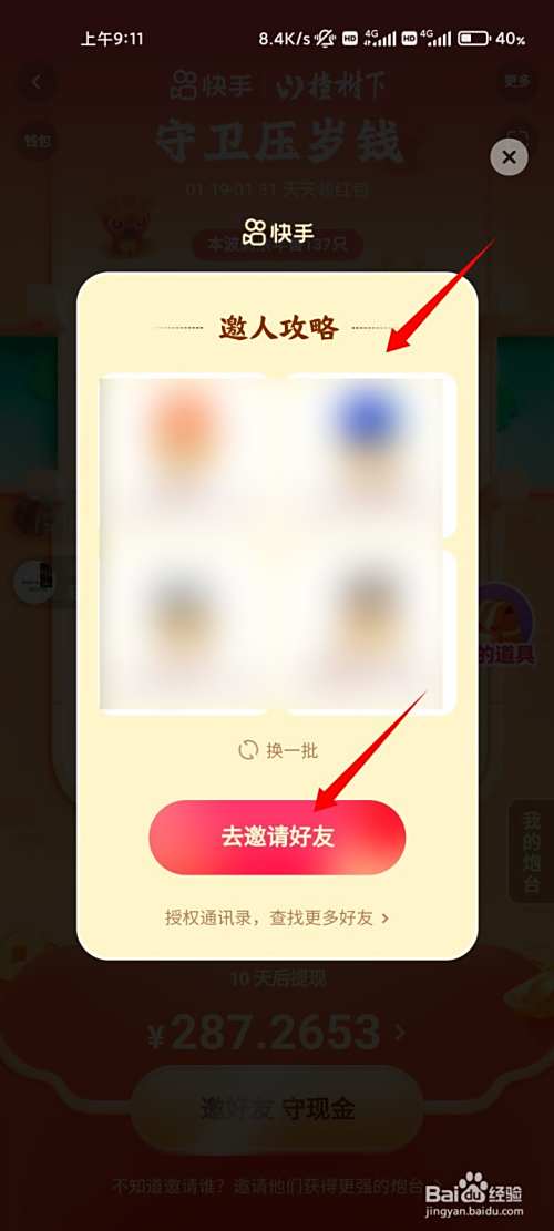 点击邀请推荐列表中的好友,即刻有机会打掉更多的年兽。在活动期结束之后,除掉被年兽偷走的压岁钱,剩余的压岁钱都是你的了,可以提现。