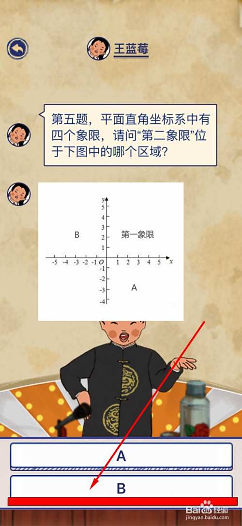 平面直角坐标系中有四个象限,“第二象限”位于下图中的【B】区域
