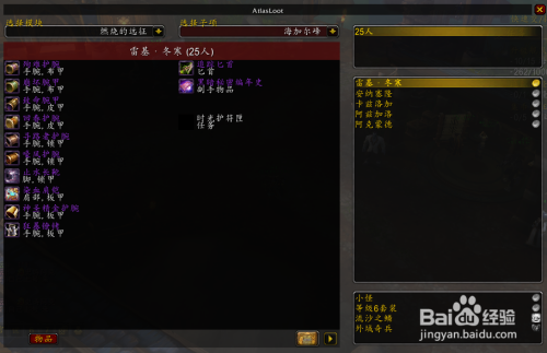 在聊天框输入/AL 可以调出 鼠标指向物品名字按CTRL键可以出现试用,同时还包括了各种难度下不同物品的颜色模板区别,不同职业掉落,不同难度坐骑掉落,宠物掉落,以及成就情况,从60年代到100级全有