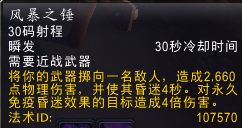 我是战士号去的,切成防战天赋,点出风暴之锤天赋,这个不是用来晕人,是用来远距离打怪用,后面会提到