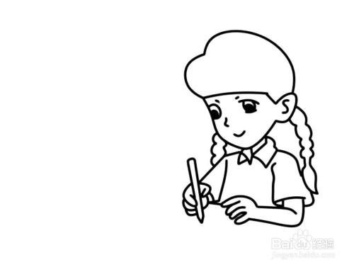 我们经常告诉孩子,下课后要积极完成作业,我们可以和孩子一起动手画一幅简笔画,比如小女孩正在写作业的卡通画。