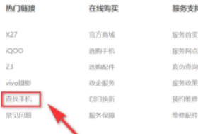 打开vivo官网,下滑到页面底部,并点击“查找手机”