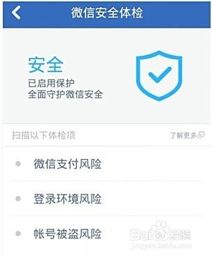 通过腾讯手机管家我们可以扫描我们手机中的微信安全,在微信安全体检页面中,我们可以保障我们的微信各项风险。