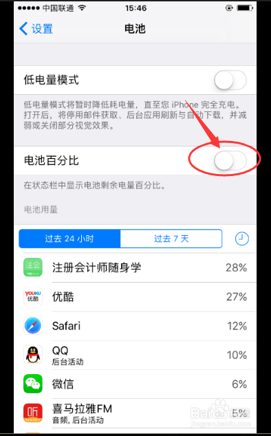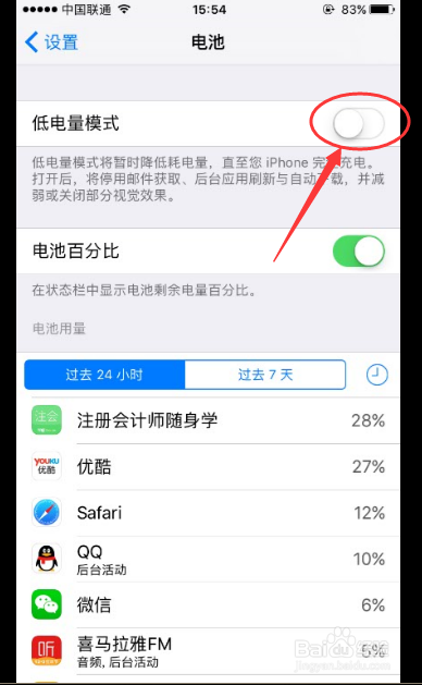 在电池用量中我们可以看到“过去24小时”和“过去7天的电池用量”
