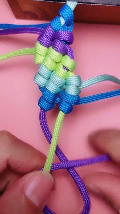 6最后再将紫色的绳子再次绕过绿色的绳子扯直即可。