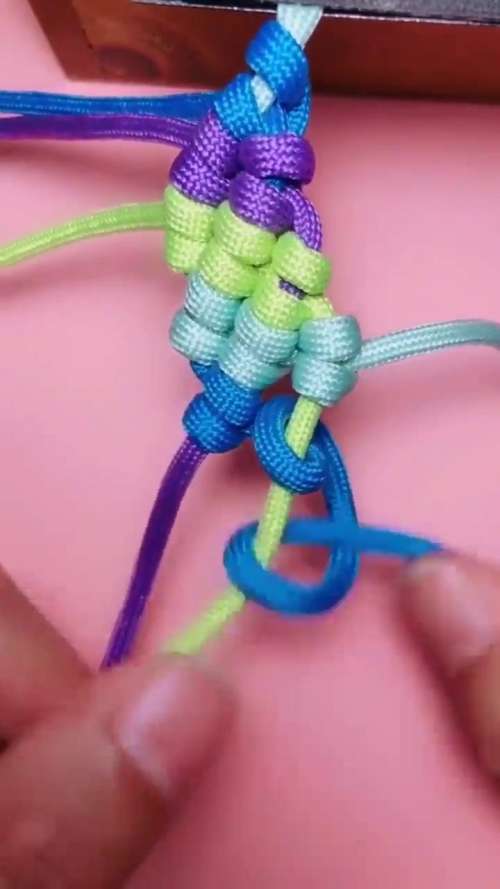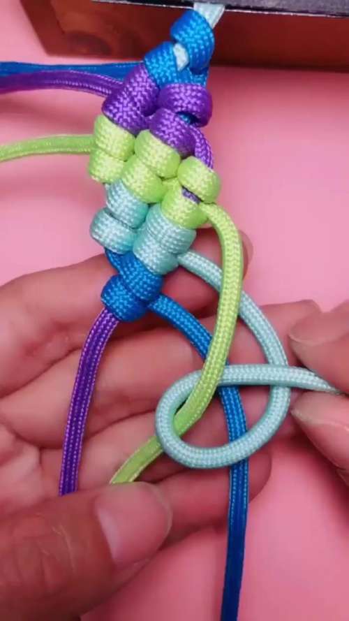 2再将浅蓝色的绳子再次绕过绿色的绳子扯直。