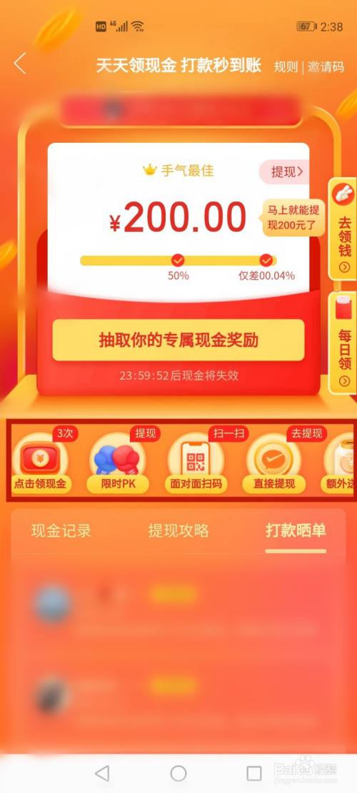 在手机上打开拼多多,滑到第二页点击【天天领现金】。
