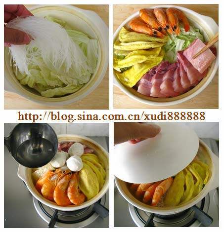 蛋饺、鱼圆、咸肉、大虾干、水发肉皮、大白菜、粉丝、盐、高汤(食材可自行随意搭配)