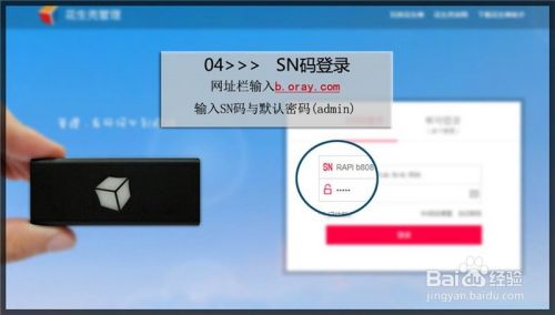 在浏览器输入地址:b.oray.com,在花生壳管理页面,输入SN码与密码(首次登录默认密码admin);