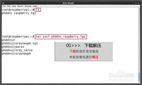 输入命令:tar zxvf phddns_raspberry.tgz 解压安装包。