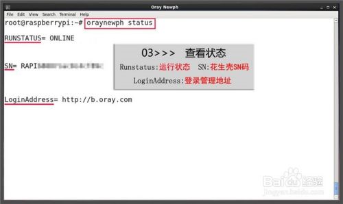在任意路径命令行执行 oraynewph status 即可看到花生壳运行状态以及SN码(先复制,有大用!)。